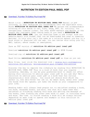 Free PDF Nutrition Th Edition Paul Insel PDF Doc Library Genesis